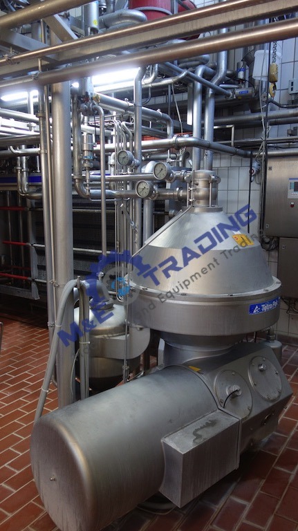 Eine komplette Tetra Pak / Alfa Laval Erhitzerlinie mit Milcherhitzer, Rahmerhitzer und Alfa Laval MRPX 714 Milchseparator (Entrahmer), alles Baujahr 2001. Die Kapazität der Linie beträgt 15.000 – 22.000 l / h. Alle erforderlichen Ventile und Pumpen sind im Lieferumfang der Maschine enthalten. Der Separator wird mit Werkzeug, Grundrahmen und Schaltschrank geliefert. Der Schaltschrank für die Erhitzerlinie ist ebenfalls enthalten, dieser wird mit einer Siemens S7-Steuerung betrieben. Der Gesamtzustand der Anlage ist sehr gut.