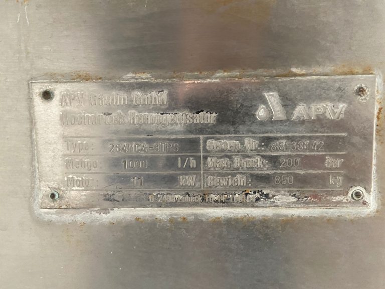 (SOLD) Homogenizer APV Gaulin MC4 – 1000 l/h